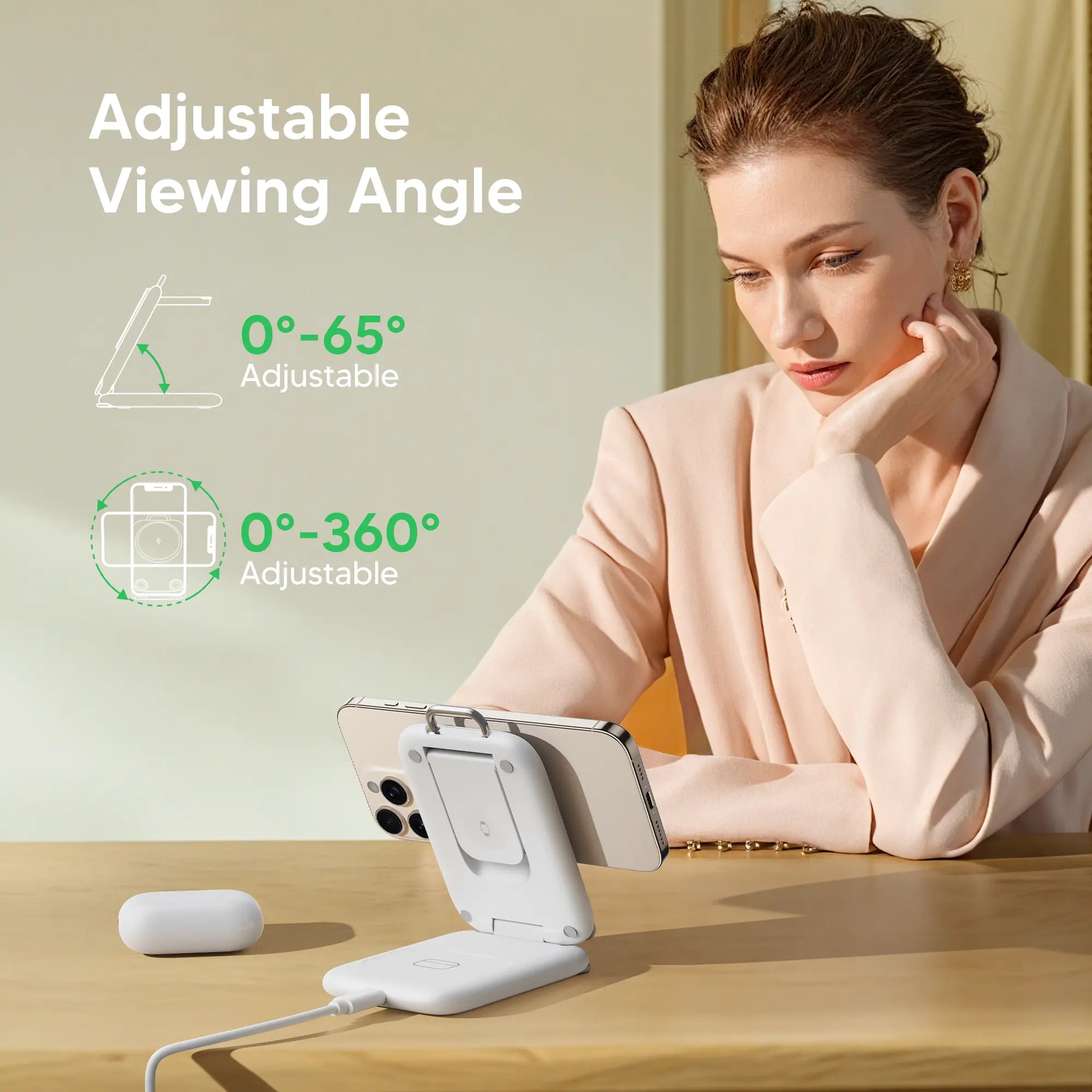 Stylish white design, desktop-friendly, blending practicality and aesthetics for everyday charging convenience.