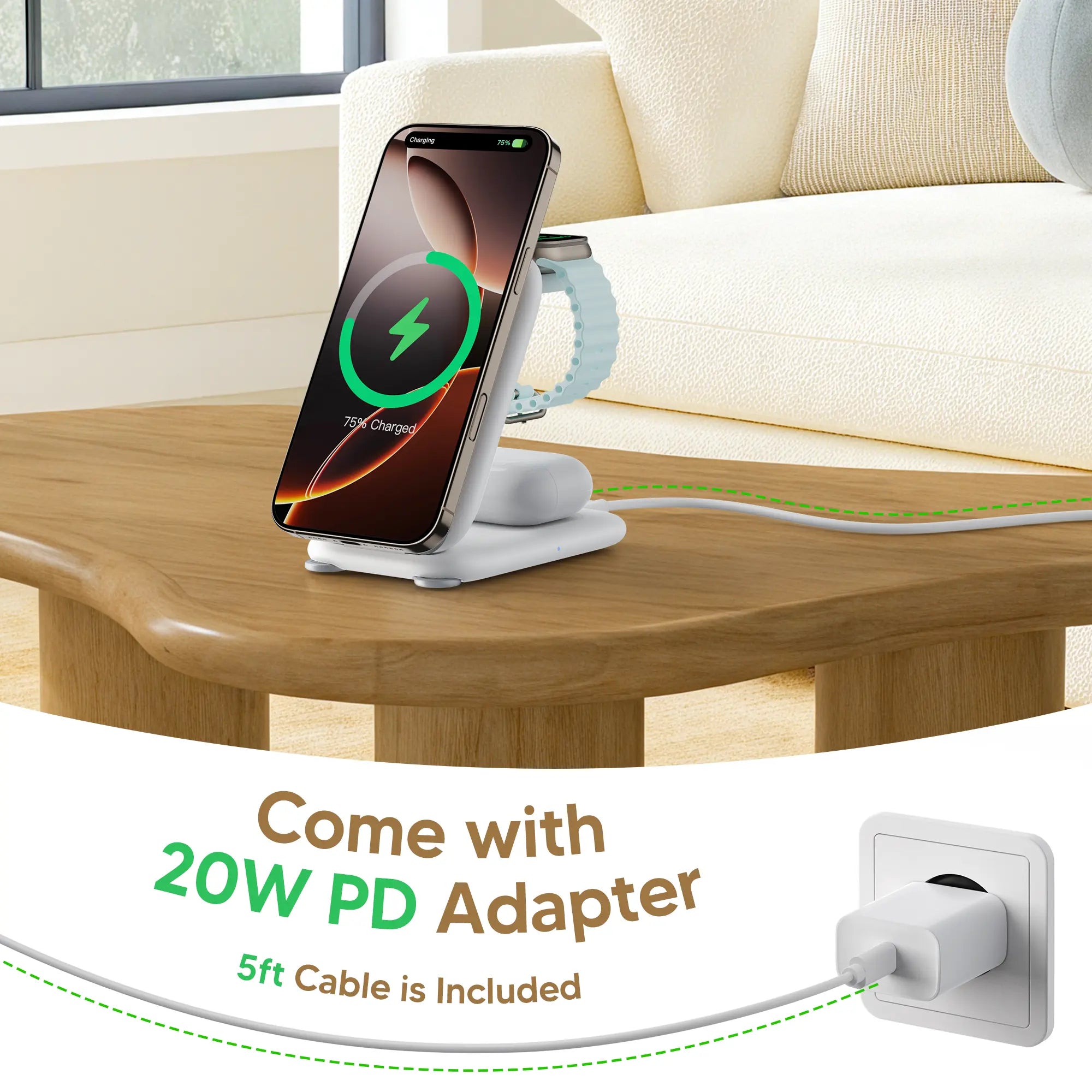Comes with a 20W PD fast charger adapter for efficient wireless charging, boosting iPhone charging speed.