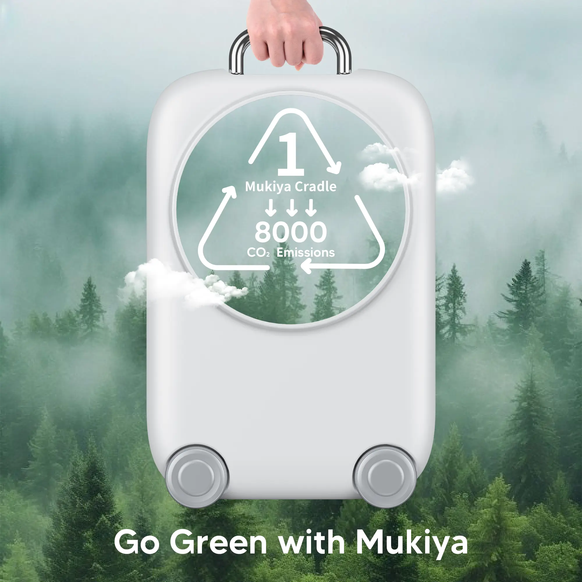 Mukiya Cradle luggage features an eco-friendly design, reducing 8000 CO2 emissions per piece, promoting a low-carbon lifestyle.